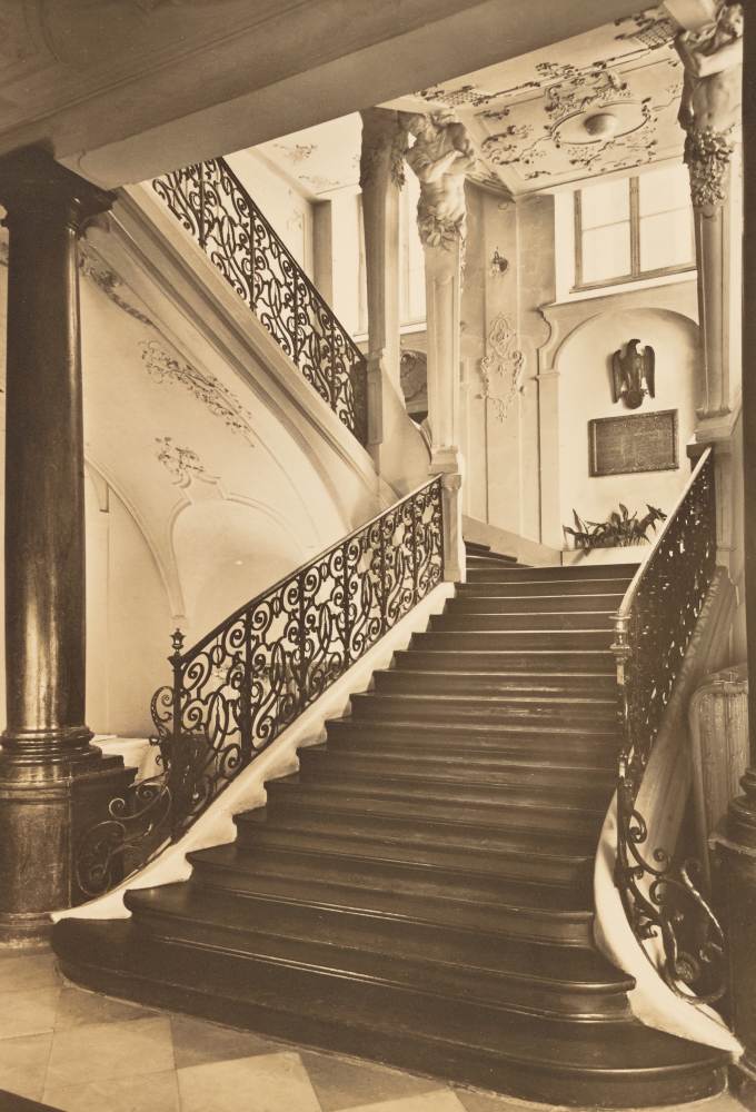 Prunktreppenhaus, vor dem Krieg. ID: 2378 | Diese Datei wird angezeigt in: Das Palais Preysing Die dreiläufige Treppenanlage erschließt auf vergleichsweise geringer Grundfläche zwei Obergeschosse. | Erstellt von: Himpst. | Quelle: Zentralinstitut für Kunstgeschichte, Photothek/Archiv, ZI-0963-06-00-Th238679 | Rechte: vorbehalten CreatorHimpst.SourceZentralinstitut für Kunstgeschichte, Photothek/Archiv, ZI-0963-06-00-Th238679Rightsvorbehalten "Prunktreppenhaus, vor dem Krieg." wird angezeigt in: Das Palais Preysing
