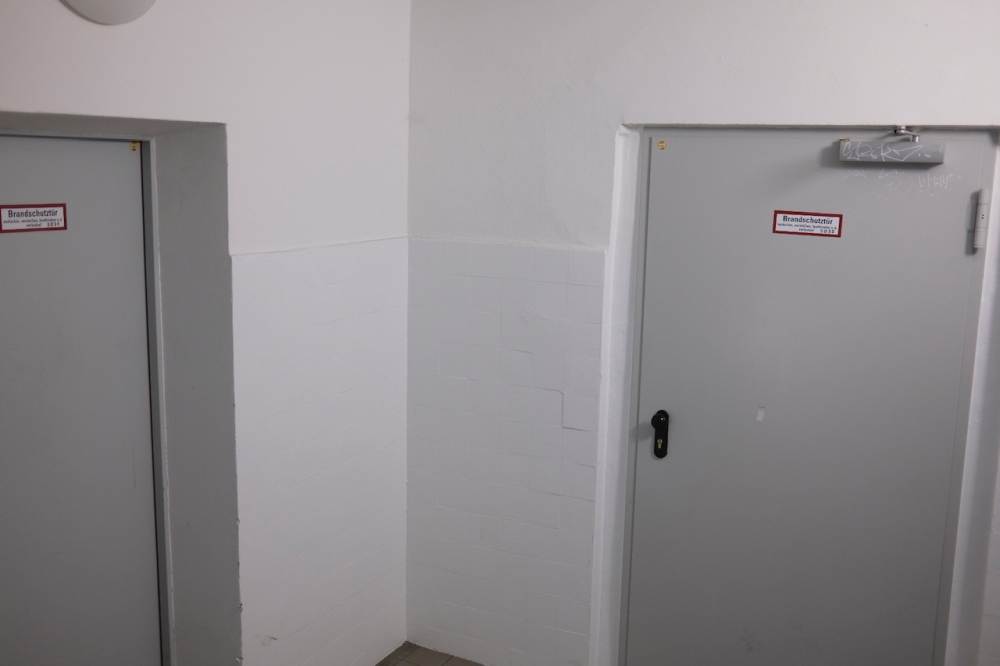 Treppenhaus zum Jugendtreff, 2025. ID: 2427 | Diese Datei wird angezeigt in: Das Tröpferlbad Im Treppenhaus ist der ursprüngliche Fliesenspiegel unter der Übermalung noch zu erkennen. | Erstellt von: Eva Blüml CreatorEva Blüml "Treppenhaus zum Jugendtreff, 2025." wird angezeigt in: Das Tröpferlbad