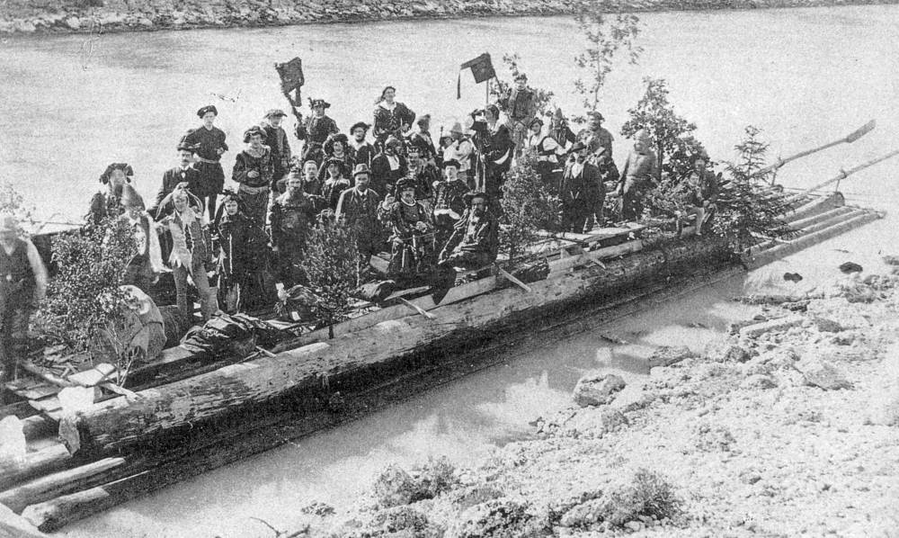 Floßfahrt des Winzerer Fähndl nach Landshut 1893 ID: 2454 | Diese Datei wird angezeigt in: Das Grab von Karl Josef Zwerschina Bereits 1893 fuhr die Romantik-Gilde mit dem Floß nach Landshut, um dort das Armbrustschießen am Hof Herzog Georg des Reichen im Jahr 1493 in „historischer Darstellung“ aufzuführen. | Quelle: Stadtarchiv München, C1893127 | Rechte: CC BY-ND 4.0 SourceStadtarchiv München, C1893127RightsCC BY-ND 4.0 "Floßfahrt des Winzerer Fähndl nach Landshut 1893 " wird angezeigt in: Das Grab von Karl Josef Zwerschina