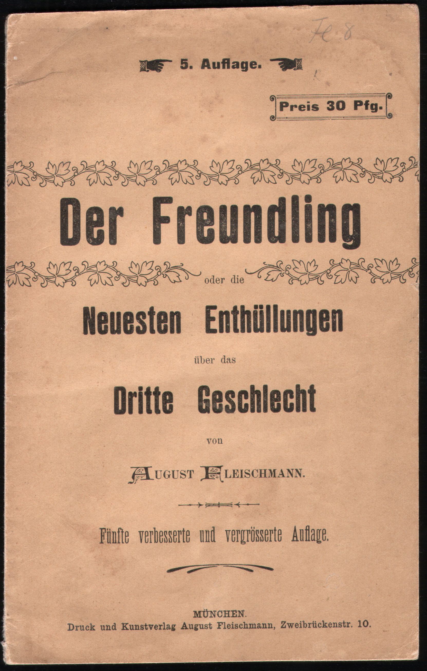 In Der Freundling – Neueste Enthüllungen über das Dritte Geschlecht griff August Fleischmann die Theorien des Sexualforschers Magnus Hirschfeld über das Wesen der Homosexuellen auf. Mit dem Begriff „Freundling“ suchte Fleischmann nach einer positiven Selbstbezeichnung für schwule Männer.