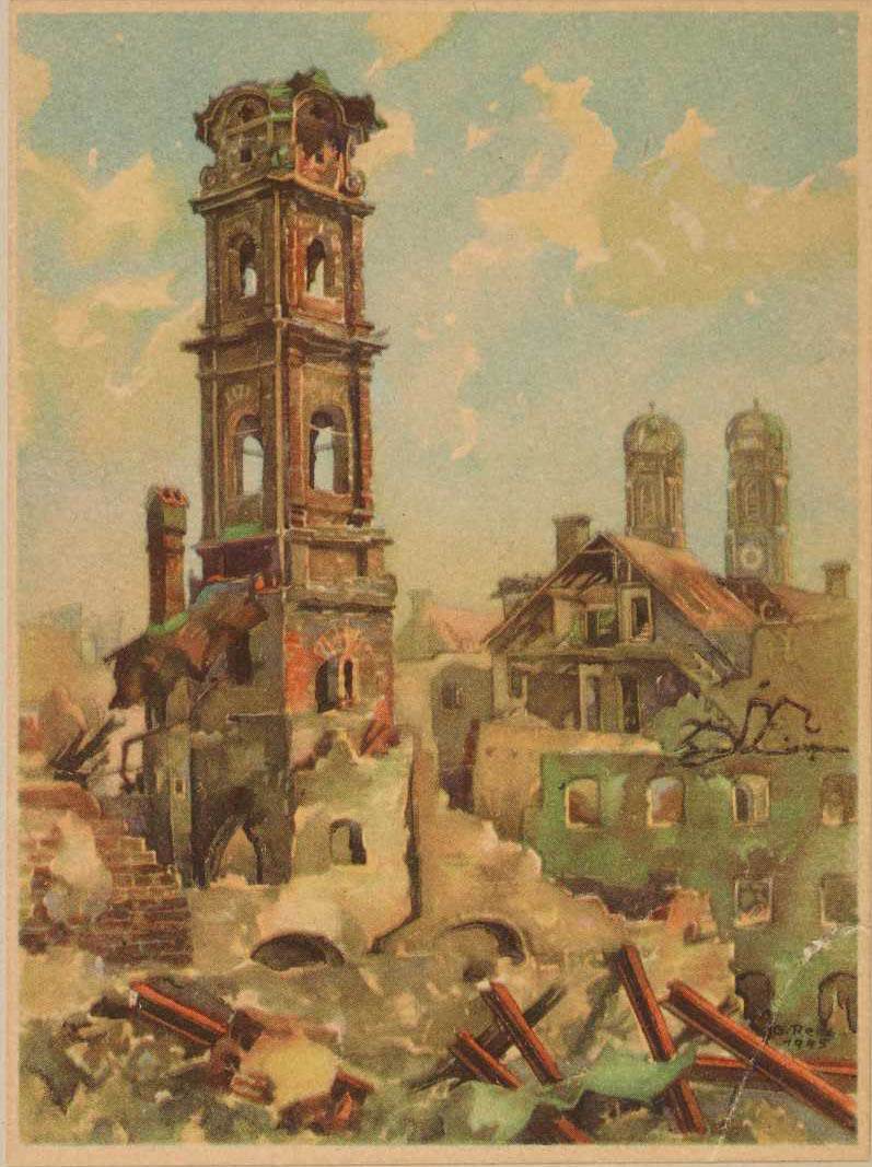 Die Kirche wurde bei der Bombardierung der Münchener Innenstadt 1944 zunächst beschädigt und schließlich bis auf den Turm vollständig zerstört. | Quelle: Zentralinstitut für Kunstgeschichte, Photothek, ZI-0842-03-144102